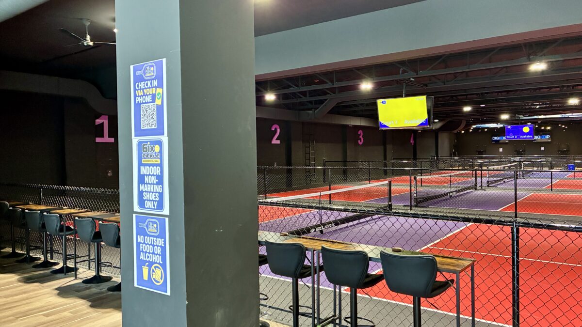 The facility’s dark color scheme contrasts with typical bright-colored pickleball centers, creating what Wat describes as “more of a social kind of spot” where players can interact across courts. This design philosophy targets community building over high-volume throughput, positioning 6ix Pickle against larger operators in the industry through focused amenities and atmosphere.